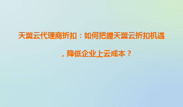 把握天翼云代理商折扣机遇,助力企业低成本高效上云 一、企业上云成本挑战与天翼云的机遇 在数字化转型浪潮下,云计算成为企业降本增效的核心工具。然而,公有云资源采购成本、运...