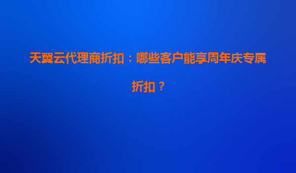 2025-05-18天翼云代理商周年庆专属折扣:哪些客户能享受优惠? 一、周年庆专属折扣适用客户群体 天翼云为庆祝周年庆,推出代理商专属折扣活动,旨在回馈长期合作伙伴并吸...