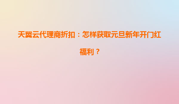 2025-05-18元旦新年开门红!天翼云代理商专属福利重磅来袭 随着新年钟声的临近,天翼云为合作伙伴推出“元旦开门红”年度钜惠活动。作为国内领先的云服务品牌,天翼云不仅以技术实力领跑行业,更通过丰厚的代理商政策赋能...