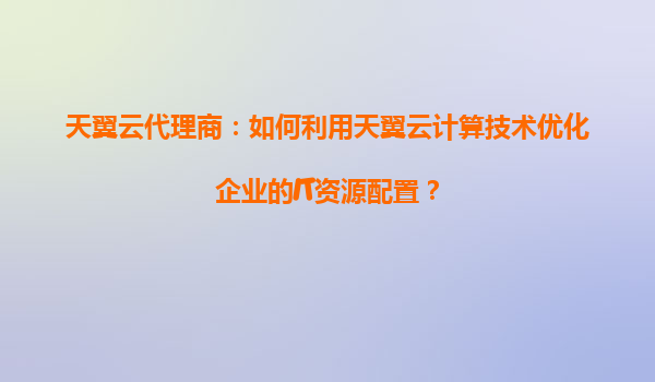 2025-05-18天翼云代理商:如何利用天翼云计算技术优化企业的IT资源配置? 一、企业IT资源配置的痛点与挑战 在数字化转型浪潮中,企业普遍面临IT资源利用率低、运维成本高、安全风险突出等问题: 硬件采...
