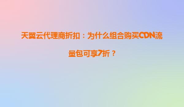 2025-05-18天翼云代理商折扣:为什么组合购买CDN流量包可享7折? 一、组合购买CDN流量包的核心价值 天翼云推出组合购买CDN流量包7折优惠策略,本质上是通过资源整合优化与用户需求匹配的精准营销方案。CDN作为内...