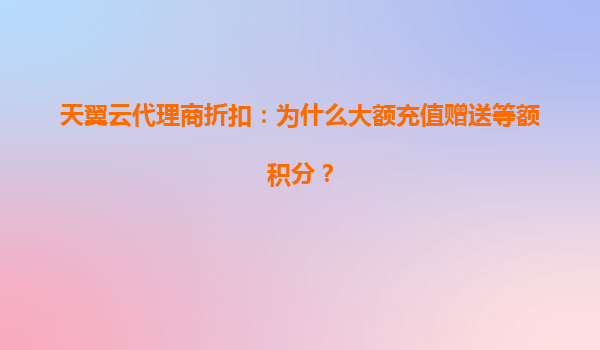 2025-05-17天翼云代理商折扣政策解析:大额充值赠送等额积分的深层逻辑 一、天翼云代理商折扣的核心优势 作为中国电信旗下的云计算服务品牌,天翼云凭借其独特的资源整合能力与技术创新,在代理商生态体系中推出...