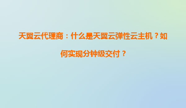 2025-05-17天翼云代理商:天翼云弹性云主机解析与分钟级交付实现 一、什么是天翼云弹性云主机? 天翼云弹性云主机(ElasticCloudServer,ECS)是基于虚拟化技术构建的云端计算服务,用户可按需获取CPU、内存、存储...
