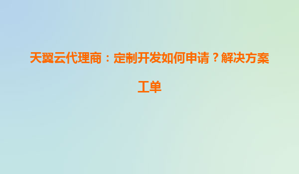 2025-05-17天翼云代理商定制开发申请指南 一、定制开发助力企业数字化转型 在数字化转型浪潮中,企业对于云服务的个性化需求日益增长。天翼云作为国内领先的云服务商,为代理商伙伴提供专属定制开发服务,通...