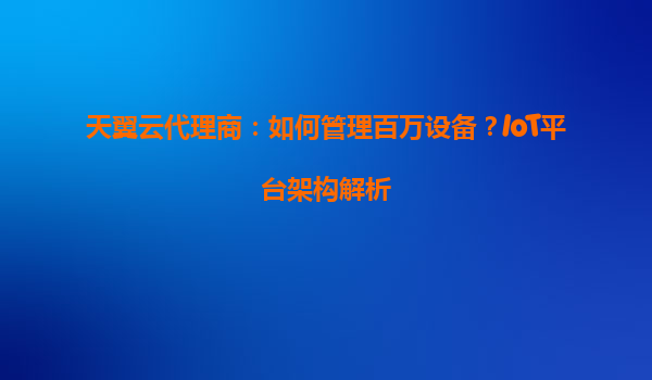 2025-05-16天翼云代理商如何管理百万设备?IoT平台架构解析 一、百万级IoT设备管理的挑战与需求 在物联网(IoT)快速发展的背景下,设备规模呈指数级增长。对于代理商而言...