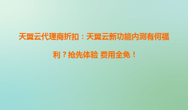 天翼云新功能内测福利来袭:抢先体验+费用全免,代理商折扣助力企业上云 天翼云新功能内测:技术创新的前沿阵地 天翼云作为国内领先的云服务提供商,始终以技术创新为核心驱动力。此...
