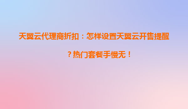 2025-05-10天翼云代理商折扣攻略:如何设置开售提醒,抢购热门套餐? 为什么选择天翼云? 随着云计算市场竞争日益激烈,天翼云凭借其强大的技术实力和资源优势,成为企业和个人用户的首选平台...