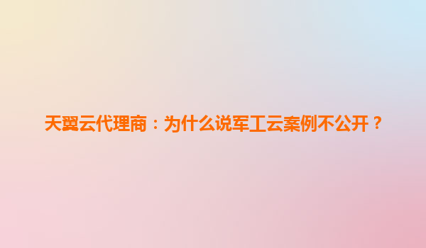 天翼云代理商视角:军工云案例不公开的原因与天翼云的核心优势 引言:军工云的特殊性与保密需求 在数字化转型浪潮中,“军工云”作为国家关键领域信息化建设的...
