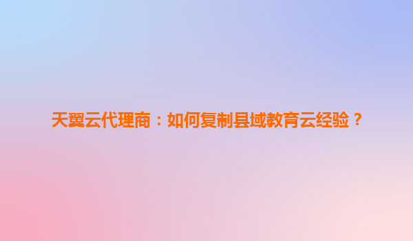 2025-05-01天翼云代理商:如何复制县域教育云经验? 一、县域教育云的成功经验与可复制性 近年来,县域教育云通过数字化手段有效解决了教育资源分布不均、信息化管理滞后等问题。天翼云作为中国电信旗下...
