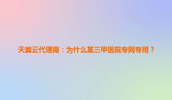 2025-05-01天翼云代理商助力三甲医院实现专网专用:安全、高效与智能的数字化转型 一、为什么三甲医院需要专网专用? 在医疗行业数字化进程中,三甲医院作为医疗服务体系的核心枢纽,对网络...