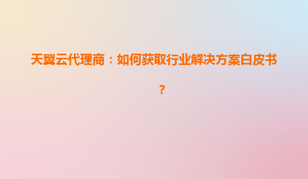 2025-05-01天翼云代理商如何获取行业解决方案白皮书? 随着数字化转型的加速,企业对云计算的需求日益多样化。作为天翼云代理商,掌握行业解决方案白皮书不仅能提升服务能力,还能为客户提供精准的技术支持。...