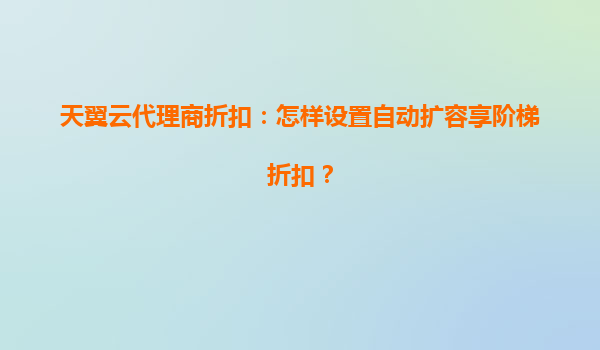 2025-05-01天翼云代理商折扣:如何通过自动扩容实现阶梯折扣最大化? 一、天翼云自动扩容与阶梯折扣的核心价值 天翼云作为国内领先的云服务提供商,通过弹性计算资源与智能化管理能力,为代理商提供“自动扩容+阶梯折...
