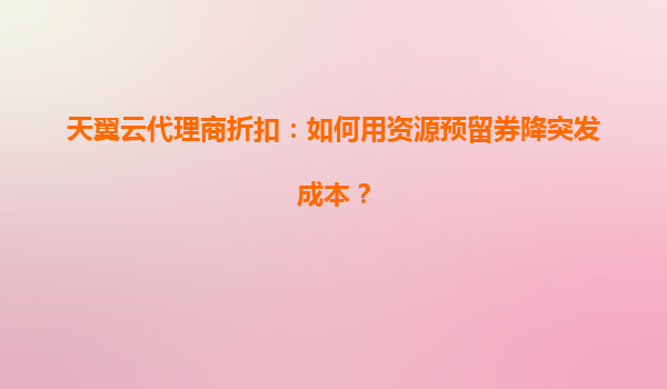 天翼云代理商折扣:如何用资源预留券降突发成本? 一、突发成本的挑战与企业痛点 在云计算场景中,企业常面临流量激增或业务波动导致的突发性资源需求。若按量付费模式直接购买天...