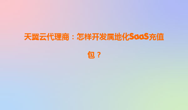 2025-05-01天翼云代理商如何开发属地化SaaS充值包? 一、属地化SaaS充值包的重要性 随着企业数字化转型加速,SaaS服务逐渐成为企业降本增效的核心工具。然而,不同地区的企业在需求、政策、支付习惯等方面存...