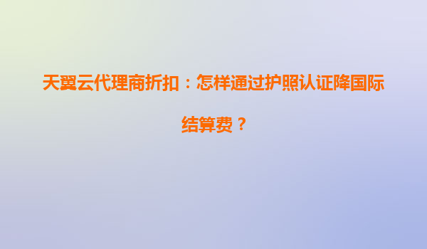 2025-05-01天翼云代理商折扣:如何通过护照认证降低国际结算费用? 一、天翼云的全球化优势与代理商体系 作为中国电信旗下的云服务品牌,天翼云依托全球化资源布局和技术能力,为国际用户提供高效、安全的云计算...