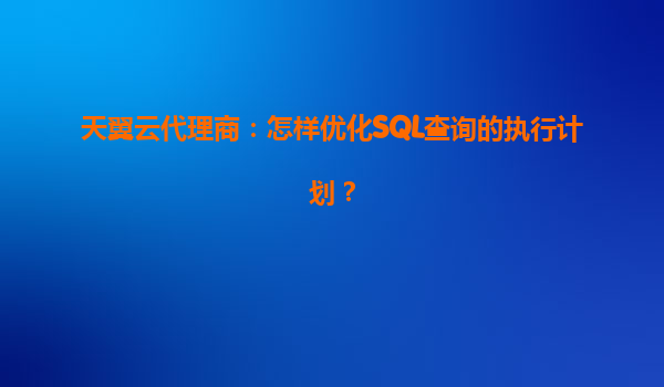 2025-05-01天翼云代理商:如何优化SQL查询的执行计划 引言:SQL查询优化的必要性 在数据库应用中,SQL查询性能直接影响业务系统的响应速度和用户体验。作为天翼云代理商,我们发现通过优化执行计划,不仅能...