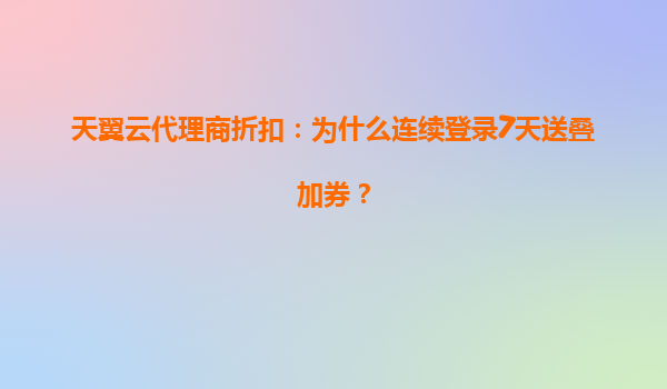 2025-05-01天翼云代理商折扣:连续登录7天送叠加券的深层逻辑与优势分析 一、天翼云的核心竞争优势解析 作为中国电信旗下云计算品牌,天翼云凭借三大核心优势构建竞争壁垒: 全栈资源整合能力:覆盖IaaS...
