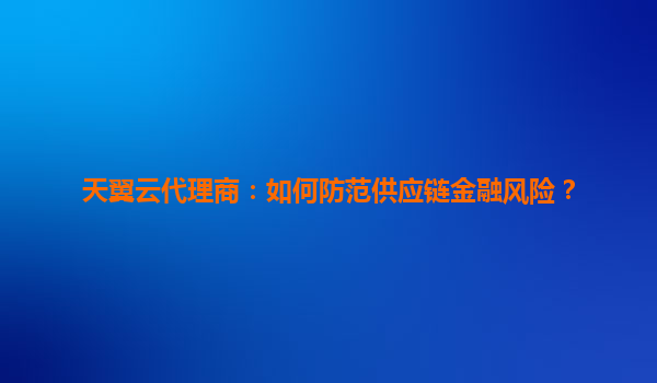 2025-05-01天翼云代理商如何防范供应链金融风险? 一、供应链金融风险的核心挑战 在供应链金融场景中,企业面临信息不对称、交易流程复杂、数据安全威胁等多重风险,具体表现为: 信用风险:上下游...