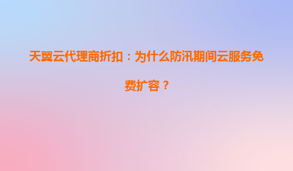 2025-04-30天翼云代理商折扣:防汛期间云服务免费扩容的背后逻辑与优势 一、防汛期间云服务需求激增的背景 每年汛期,政府机构、企事业单位对信息化系统的稳定性要求达到峰值。气象监测、应急指挥、灾情上报等场景需...