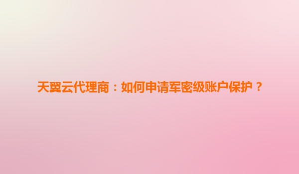 2025-04-30天翼云代理商如何申请军密级账户保护? 一、军密级账户保护的重要性 在数字化转型加速的今天,数据安全成为企业的核心诉求。对于涉及敏感信息的代理商而言,军密级账户保护能够提供远超普...