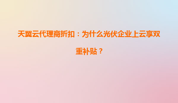 2025-04-29光伏企业上云新机遇:天翼云代理商折扣与双重补贴解析 在“双碳”目标驱动下,中国光伏产业正加速数字化转型。为降低企业用云成本,天翼云推出针对光伏行业的专项扶持政策——通过代理商渠道签约可...