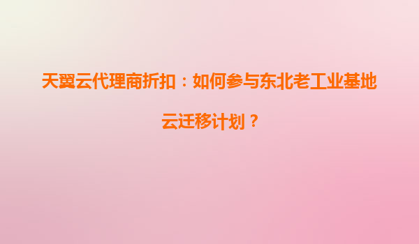 2025-04-29天翼云代理商如何参与东北老工业基地云迁移计划? 一、东北老工业基地云迁移计划的背景与意义 东北老工业基地作为国家振兴战略的核心区域,正通过数字化转型实现产业升级。云迁移计划旨在帮助企业降低I...