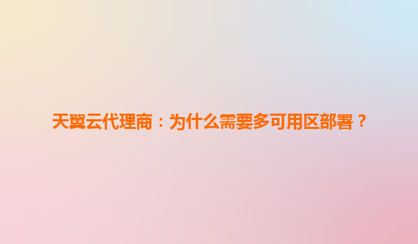天翼云代理商:为什么需要多可用区部署? 一、数字化转型浪潮下的云服务新挑战 随着企业数字化转型进程加速,业务连续性、数据安全性和服务稳定性成为核心诉求。天翼云作为国内领先的云服务商,通过多可用...