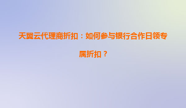 2025-04-28天翼云代理商如何通过银行合作日获取专属折扣? 天翼云与银行合作日的双重价值 作为中国电信旗下的战略级云计算服务品牌,天翼云通过与金融机构的深度合作,为代理商打造了银行合作日专属权益通道。参与该...