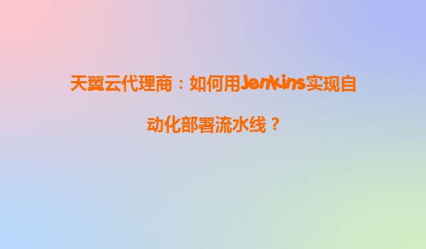 2025-04-27基于天翼云与Jenkins的自动化部署流水线实践 一、天翼云与代理商的协同优势 作为国内领先的云服务提供商,天翼云凭借以下特点成为企业数字化转型的首选: 全栈云服务能力:覆盖计算、存储、网...