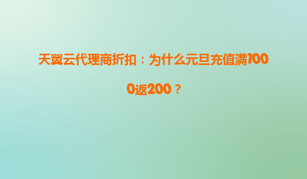 2025-04-27天翼云代理商元旦充值活动解析:满1000返200的背后逻辑 一、元旦促销活动的背景与目的 元旦作为新年的开端,是企业规划年度预算、调整IT资源的重要时间节点。天翼云推出"充值满1000返200"活动,旨...