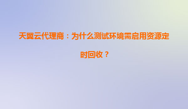 2025-04-27天翼云代理商:为什么测试环境需启用资源定时回收? 一、测试环境的特性与挑战 测试环境是软件开发与运维过程中用于验证功能、性能和安全性的临时性资源集合。其特点包括: 资源占用波动...