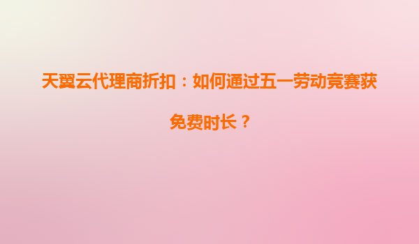2025-04-27天翼云代理商五一劳动竞赛:如何赢取免费云资源时长? 随着五一劳动节的临近,天翼云推出面向代理商的专项劳动竞赛活动,为合作伙伴提供获取免费云资源时长的黄金机会。本文将深...