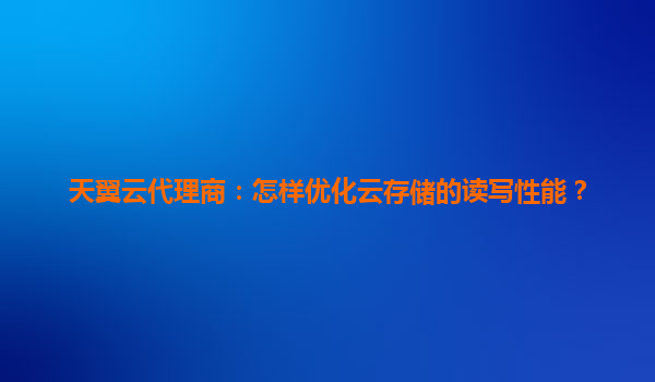 2025-04-27天翼云代理商:如何优化云存储的读写性能 一、云存储性能优化的核心挑战 随着企业对数据实时性和吞吐量需求的提升,云存储的读写性能成为关键指标。天翼云代理商在为客户设计解决方案时,需重点应对以...