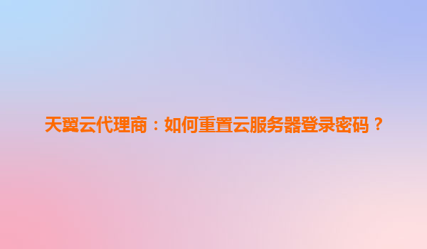 2025-04-26天翼云代理商指南:如何重置云服务器登录密码? 一、天翼云服务器登录密码重置步骤 作为天翼云代理商,帮助用户快速解决密码问题至关重要。以下是重置云服务器...