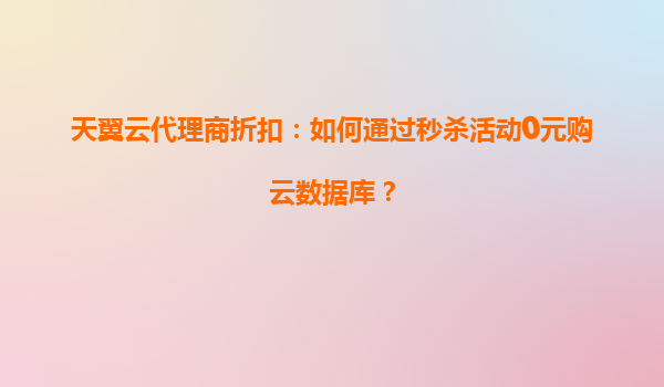 2025-04-26天翼云代理商秒杀活动:0元抢购云数据库攻略 秒杀活动核心亮点解析 天翼云推出的代理商秒杀活动为用户提供了零成本体验企业级云数据库的机会。通过限时开放注册通道与资格认证,新用户可参与...
