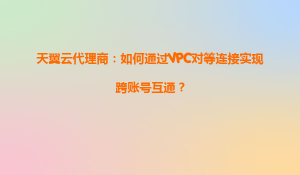 2025-04-26天翼云代理商指南:通过VPC对等连接实现跨账号互通 一、引言:跨账号VPC互通的业务价值 随着企业数字化转型的深入,多账号资源管理逐渐成为常态。跨账号的VPC(虚拟私有云)互通能够帮助企业...
