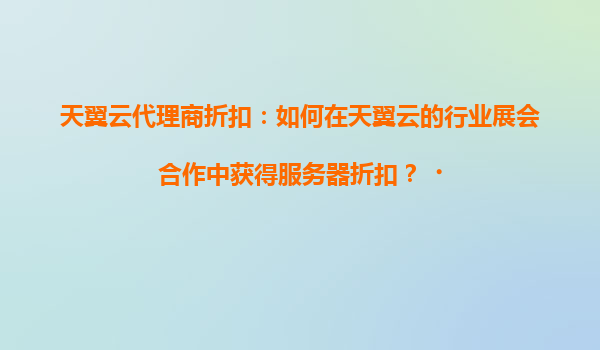 2025-04-21天翼云行业展会合作:获取服务器折扣的高效路径 一、行业展会的合作价值与机遇 天翼云作为中国电信旗下的云计算服务品牌,长期通过行业展会与客户建立深度连接。展会不仅是展示其...
