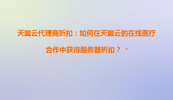 2025-04-21天翼云代理商折扣:如何在天翼云的在线医疗合作中获得服务器折扣? 一、天翼云在在线医疗领域的核心优势 天翼云作为中国电信旗下的云计算服务商,在支撑医疗行业数字化转型方面具备独特优势: ...