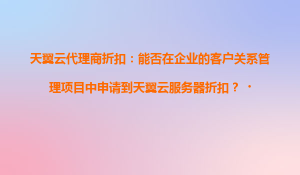 天翼云代理商折扣在企业客户关系管理项目中的应用分析 一、天翼云的核心优势解析 作为中国电信旗下的云计算品牌,天翼云在以下领域展现显著优势: 安全合规性保障:通过国家三级等保认证,满...