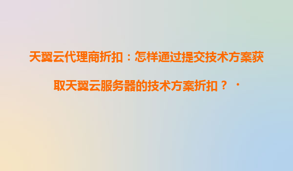 2025-04-21如何通过提交技术方案获取天翼云服务器折扣? 在数字化转型浪潮下,企业上云已成为必然趋势。作为国内领先的云服务商,天翼云凭借其技术实力与资源优势,联合全国代理商网络为企业提供高性价比的云...