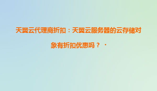 天翼云代理商折扣:云存储对象服务优惠详解 随着企业数字化转型加速,云存储服务成为业务发展的核心需求之一。天翼云作为国内领先的云服务提供商,不仅以技术实力和安全能力著称...