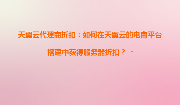 2025-04-21天翼云代理商折扣:如何在天翼云的电商平台搭建中获得服务器折扣? 一、天翼云的优势与电商平台搭建需求 天翼云作为中国电信旗下的云计算服务品牌,凭借其强大的基础设施、高安全性和本地化服务能力,成为...