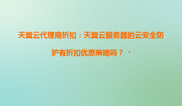 2025-04-21天翼云代理商折扣:云安全防护优惠策略解析 一、天翼云安全防护服务的折扣政策 作为中国电信旗下的核心云服务品牌,天翼云在云安全防护领域不仅提供全面的技术保障,还通过代理商合作模式为企业用...