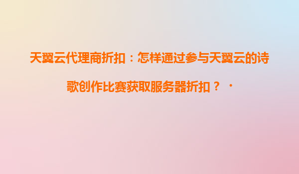 2025-04-21天翼云诗歌创作比赛:用诗意换取服务器折扣,开启云端新体验 一、天翼云诗歌创作比赛:创意与技术的跨界融合 天翼云近期推出的“云端诗意”创作比赛,为技术爱好者与文学创作者搭建了一个独特...