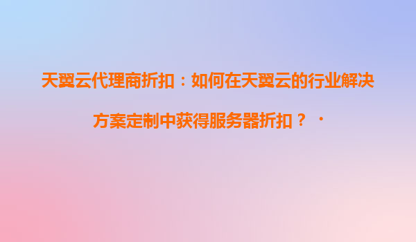2025-04-21天翼云代理商折扣:如何在天翼云的行业解决方案定制中获得服务器折扣? 一、天翼云的优势与行业解决方案的核心价值 作为中国电信旗下的云计算服务品牌,天翼云凭借强大的资源整合能力、技术研发实力和...