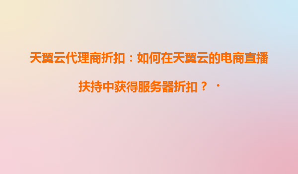 2025-04-21天翼云代理商折扣:如何在天翼云的电商直播扶持中获得服务器折扣? 一、天翼云电商直播扶持政策的核心优势 随着电商直播行业的爆发式增长,天翼云针对直播场景推出专项扶持计划,...