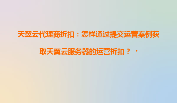 2025-04-21如何通过提交运营案例获取天翼云服务器折扣? 天翼云的核心优势 在探讨如何获取天翼云代理商折扣之前,首先需要了解天翼云的核心竞争力。作为中国电信旗下的云计算品牌,天翼云凭...
