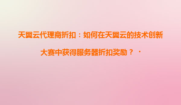 2025-04-21天翼云技术创新大赛:如何赢取服务器折扣奖励 一、天翼云技术创新大赛的机遇与价值 天翼云技术创新大赛是面向开发者、企业及技术团队的重要赛事,旨在通过实际...