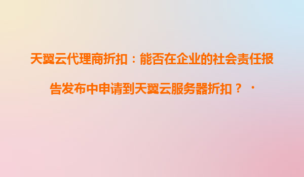 2025-04-21天翼云代理商折扣如何助力企业社会责任实践? 一、企业社会责任报告的价值与云计算需求 随着ESG理念的普及,超过78%的上市企业已将社会责任报告纳入年度披露体系。企业在报告中展示绿色计算、数字化转型成...