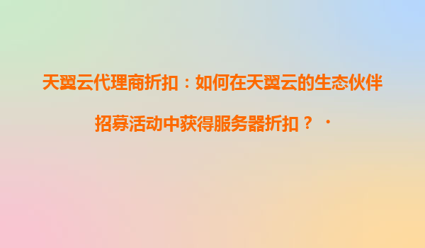 2025-04-19天翼云生态伙伴招募:如何获得服务器折扣 天翼云的核心优势与市场地位 作为中国电信旗下的云计算服务品牌,天翼云凭借央企背景和技术积累,已发展成为国内领先的云服务提供商。其核心优势体现在数...